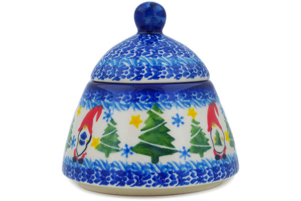 This Polish Pottery 4" Jar with Lid - Twinkle Twinkle Little Gnome is handmade and handpainted by the Ceramika Nina factory in Boleslawiec, Poland.