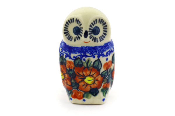 This Polish Pottery 4" Owl Figurine - Autumn Pansies is handmade and handpainted by the Ceramika Bona factory in Boleslawiec, Poland.