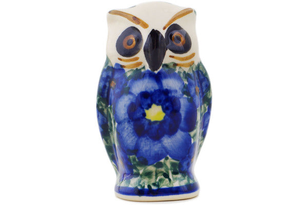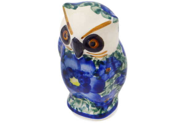 This Polish Pottery 4" Owl Figurine - Blue Daisies is handmade and handpainted by the Cer-Raf factory in Boleslawiec, Poland.