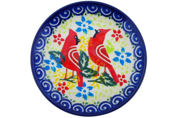 This Polish Pottery 4" Plate - Lovely Red Birds is handmade and handpainted by the Ceramika Bona factory in Boleslawiec, Poland.