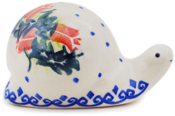 This Polish Pottery 4" Snail Figurine - California Poppies is handmade and handpainted by the Ceramika Bona factory in Boleslawiec, Poland.