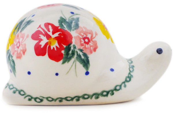 This Polish Pottery 4" Snail Figurine - Hibiscus Splendor is handmade and handpainted by the Ceramika Bona factory in Boleslawiec, Poland.