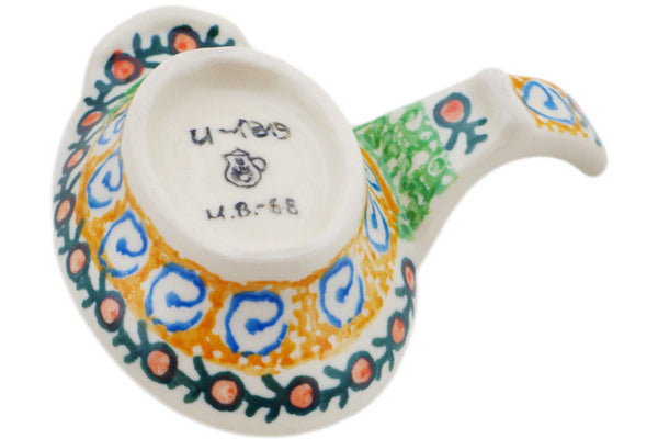 This Polish Pottery 4" Spoon Rest - Blue Poppy Circle is handmade and handpainted by the Ceramika Artystyczna factory in Boleslawiec, Poland.