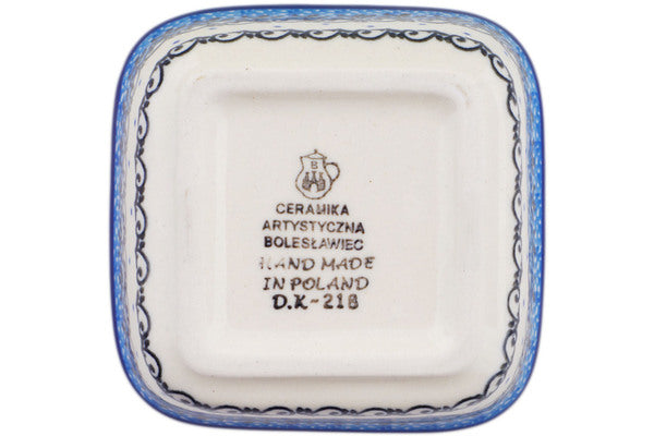 Ceramika Artystyczna factory stamp | Polish Pottery HouseThis Polish Pottery 4" Square Bowl - Blue And Green Flower Dream is handmade and handpainted by the Ceramika Artystyczna factory in Boleslawiec, Poland.