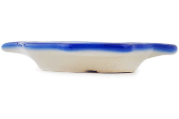 Ceramika Bona factory stamp | Polish Pottery HouseThis Polish Pottery 4" Tea Bag or Lemon Plate - Blue Thistle Beauty is handmade and handpainted by the Ceramika Bona factory in Boleslawiec, Poland.