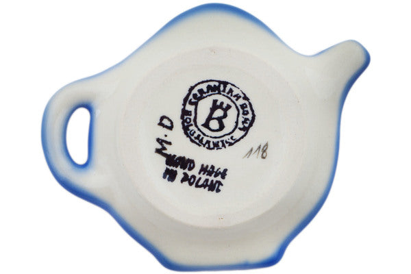 This Polish Pottery 4" Tea Bag or Lemon Plate - Lucky Clovers is handmade and handpainted by the Ceramika Bona factory in Boleslawiec, Poland.