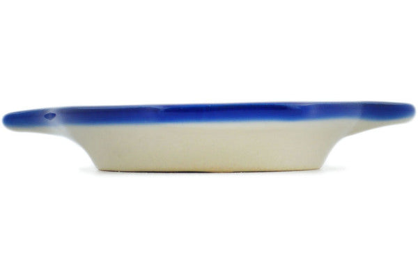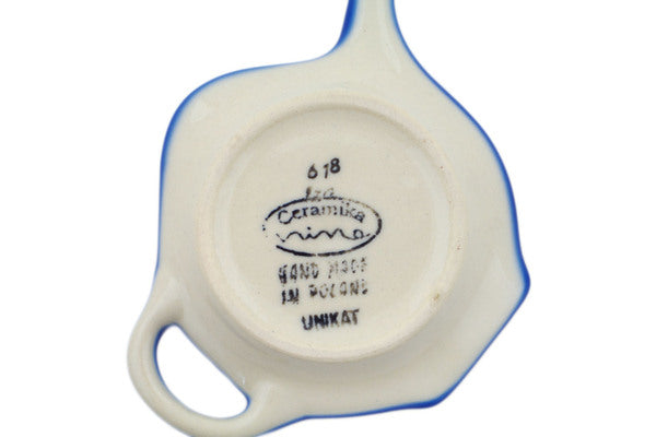This Polish Pottery 4" Tea Bag or Lemon Plate - Orange Zinnia is handmade and handpainted by the Ceramika Nina factory in Boleslawiec, Poland.