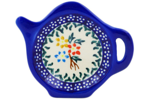 This Polish Pottery 4" Tea Bag or Lemon Plate - Spring Flower Ring is handmade and handpainted by the Ceramika Bona factory in Boleslawiec, Poland.