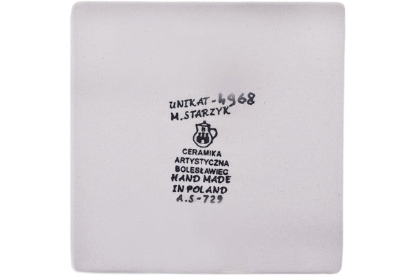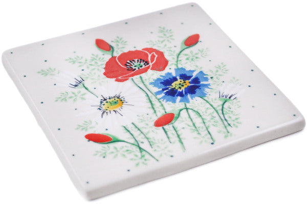 This Polish Pottery 4" Tile - Polish Wildflowers is handmade and handpainted by the Ceramika Artystyczna factory in Boleslawiec, Poland.