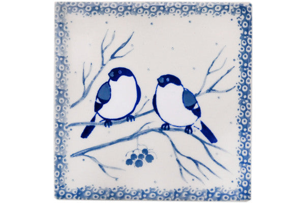 This Polish Pottery 4" Tile - Waiting Birds is handmade and handpainted by the Ceramika Artystyczna factory in Boleslawiec, Poland.