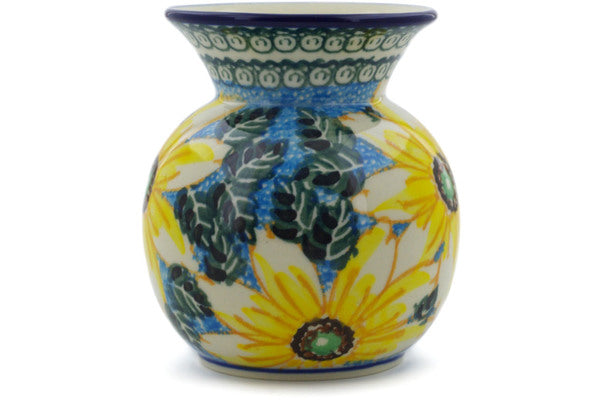 This Polish Pottery 4" Vase - Black Eyed Susan is handmade and handpainted by the Ceramika Artystyczna factory in Boleslawiec, Poland.