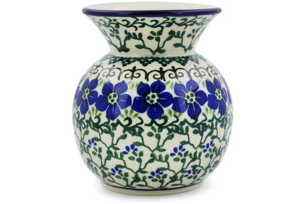This Polish Pottery 4" Vase - Blue Dogwood is handmade and handpainted by the Ceramika Artystyczna factory in Boleslawiec, Poland.