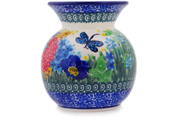 This Polish Pottery 4" Vase - Dragonfly Delight is handmade and handpainted by the Ceramika Artystyczna factory in Boleslawiec, Poland.