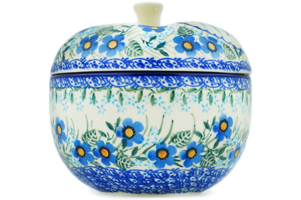 This Polish Pottery 5" Apple Shaped Jar - Blue Joy is handmade and handpainted by the Ceramika Artystyczna factory in Boleslawiec, Poland.