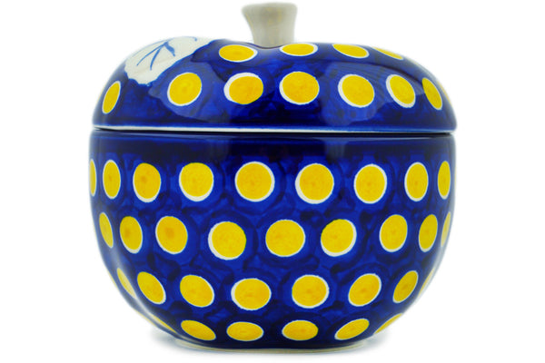 This Polish Pottery 5" Apple Shaped Jar - Yellow Dots is handmade and handpainted by the Ceramika Artystyczna factory in Boleslawiec, Poland.
