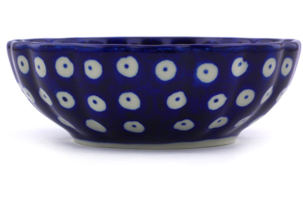 This Polish Pottery 5" Scalloped Fluted Bowl - Blue Eyes is handmade and handpainted by the Ceramika Artystyczna factory in Boleslawiec, Poland.