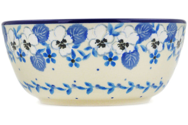 This Polish Pottery 5" Bowl - White Pansy is handmade and handpainted by the Ceramika Artystyczna factory in Boleslawiec, Poland.