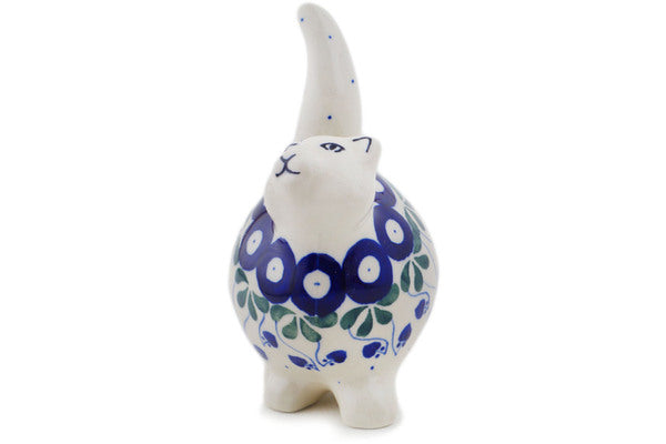 This Polish Pottery 5" Cat Figurine - Bleeding Heart Peacock is handmade and handpainted by the Ceramika Artystyczna factory in Boleslawiec, Poland.
