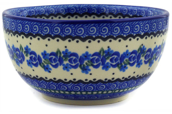 This Polish Pottery 5" Bowl - Blue Bud Sea is handmade and handpainted by the Ceramika Artystyczna factory in Boleslawiec, Poland.