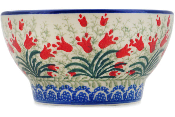 This Polish Pottery 5" Bowl - Crimson Bells is handmade and handpainted by the Ceramika Artystyczna factory in Boleslawiec, Poland.