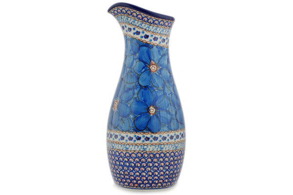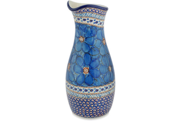 This Polish Pottery 44 oz Carafe - Blue Poppies is handmade and handpainted by the Ceramika Artystyczna factory in Boleslawiec, Poland.
