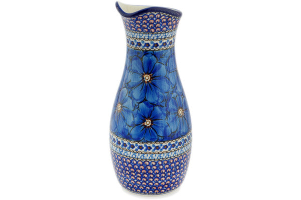 This Polish Pottery 44 oz Carafe - Cobalt Poppies is handmade and handpainted by the Ceramika Artystyczna factory in Boleslawiec, Poland.