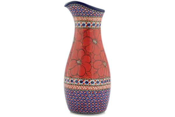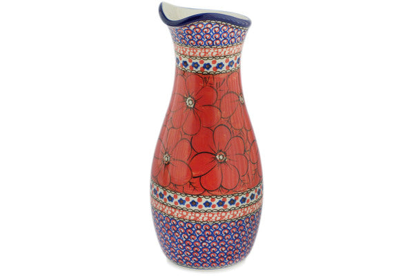 This Polish Pottery 44 oz Carafe - Crimson Poppies is handmade and handpainted by the Ceramika Artystyczna factory in Boleslawiec, Poland.