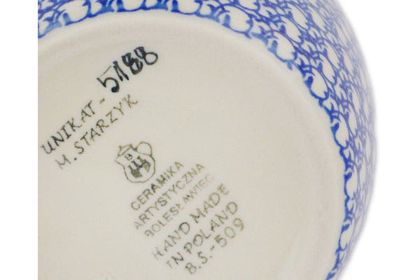 This Polish Pottery 44 oz Carafe - Robin & Wren is handmade and handpainted by the Ceramika Artystyczna factory in Boleslawiec, Poland.
