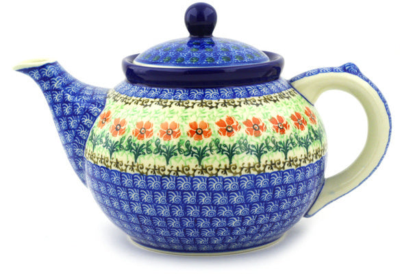 This Polish Pottery 40 oz Tea or Coffee Pot - Maraschino is handmade and handpainted by the Ceramika Artystyczna factory in Boleslawiec, Poland.
