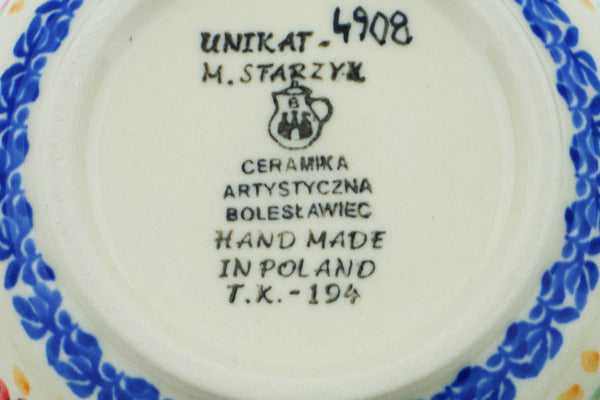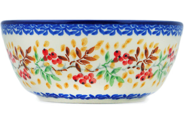 This Polish Pottery 5" Bowl - Bullfinch On Rowan is handmade and handpainted by the Ceramika Artystyczna factory in Boleslawiec, Poland.