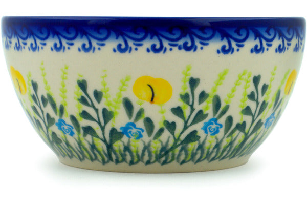 This Polish Pottery 5" Bowl - Bright Blooms is handmade and handpainted by the Ceramika Nina factory in Boleslawiec, Poland.