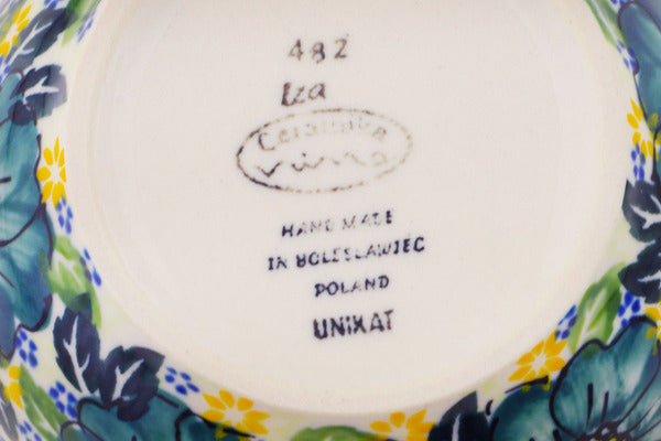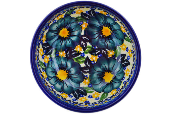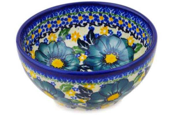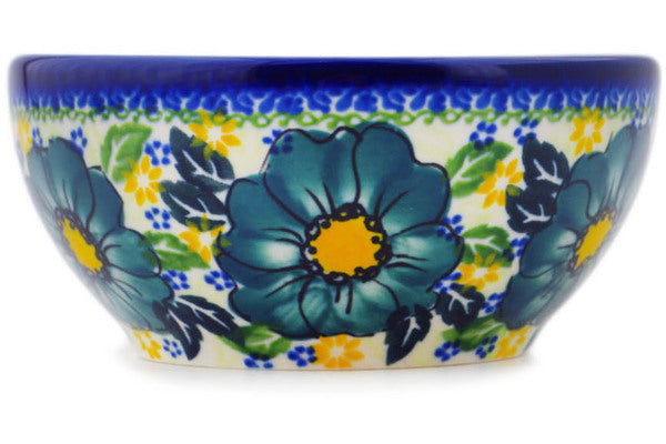 This Polish Pottery 5" Bowl - Cadet Blue Flowers is handmade and handpainted by the Ceramika Bona factory in Boleslawiec, Poland.