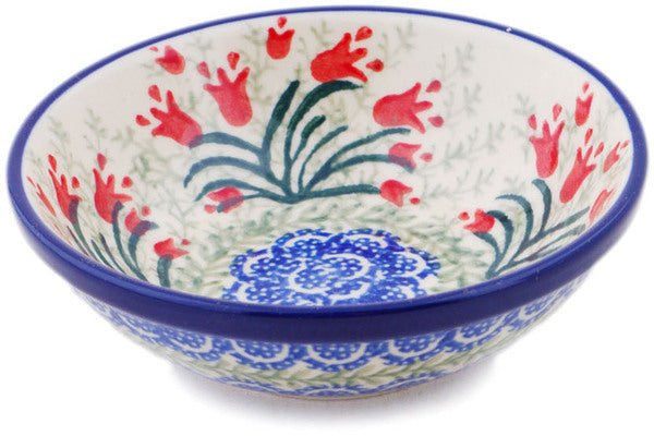 This Polish Pottery 5" Bowl - Crimson Bells is handmade and handpainted by the Ceramika Artystyczna factory in Boleslawiec, Poland.