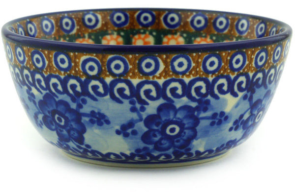 This Polish Pottery 5" Bowl - Dancing Blue Poppies is handmade and handpainted by the Ceramika Artystyczna factory in Boleslawiec, Poland.