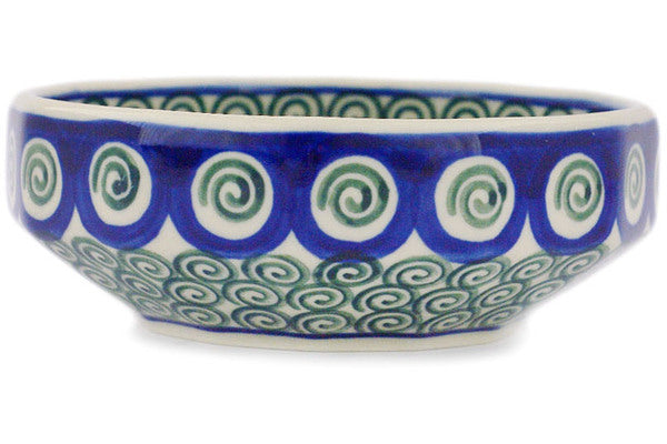 This Polish Pottery 5" Bowl - Green Peacock Swirl is handmade and handpainted by the Ceramika Artystyczna factory in Boleslawiec, Poland.