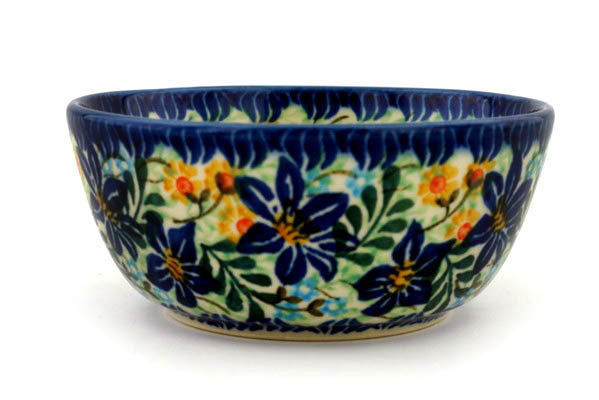 This Polish Pottery 5" Bowl - Midnight Lilies is handmade and handpainted by the Ceramika Artystyczna factory in Boleslawiec, Poland.