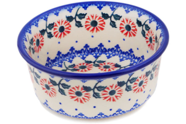 This Polish Pottery 5" Bowl - Red Daisy Delight is handmade and handpainted by the Ceramika Bona factory in Boleslawiec, Poland.