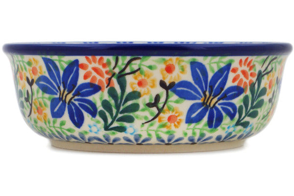 This Polish Pottery 5" Bowl - Sapphire Lilies is handmade and handpainted by the Ceramika Artystyczna factory in Boleslawiec, Poland.