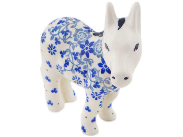 This Polish Pottery 5" Donkey Figurine - Blue Country Field is handmade and handpainted by the Ceramika Artystyczna factory in Boleslawiec, Poland.