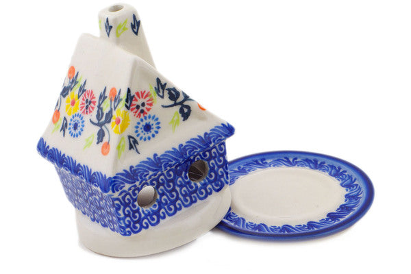 This Polish Pottery 5" House Shaped Candle Holder - Pastel Spring Wreath is handmade and handpainted by the Ceramika Bona factory in Boleslawiec, Poland.