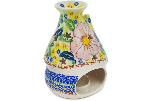 This Polish Pottery 5" House Shaped Candle Holder - Pink Delight is handmade and handpainted by the Ceramika Nina factory in Boleslawiec, Poland.