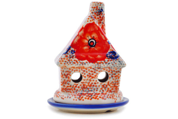 This Polish Pottery 5" House Shaped Candle Holder - Poppy Passion is handmade and handpainted by the Ceramika Bona factory in Boleslawiec, Poland.
