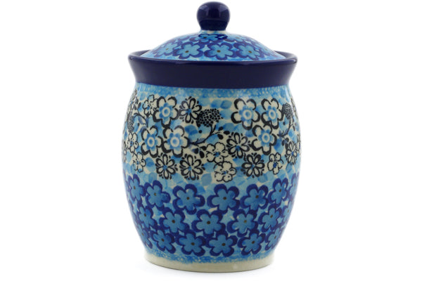 This Polish Pottery 5" Jar with Lid - Out Of Blue is handmade and handpainted by the Ceramika Artystyczna factory in Boleslawiec, Poland.