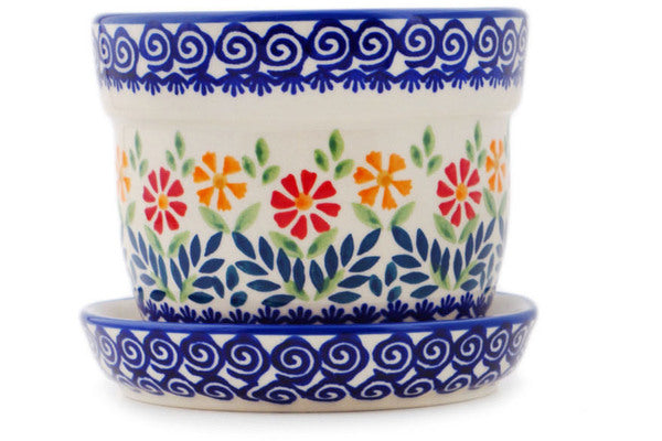 This Polish Pottery 5" Planter - Wave Of Flowers is handmade and handpainted by the Manufaktura factory in Boleslawiec, Poland.