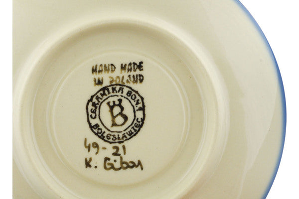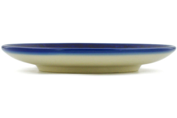 This Polish Pottery 5" Saucer - Blue Eyed Peacock is handmade and handpainted by the Ceramika Bona factory in Boleslawiec, Poland.
