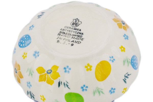 This Polish Pottery 5" Scalloped Fluted Bowl - Egg Hunt is handmade and handpainted by the Ceramika Artystyczna factory in Boleslawiec, Poland.