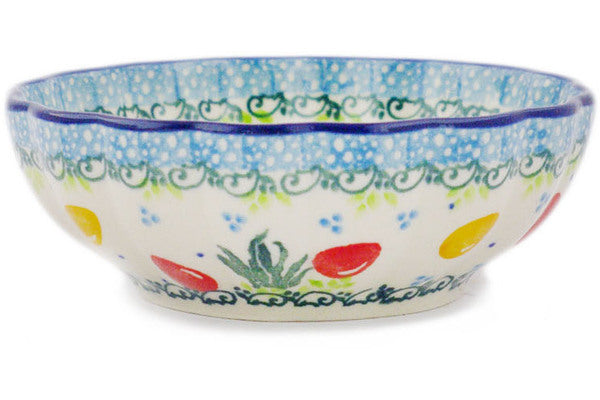 This Polish Pottery 5" Scalloped Fluted Bowl - 3349X is handmade and handpainted by the Ceramika Artystyczna factory in Boleslawiec, Poland.