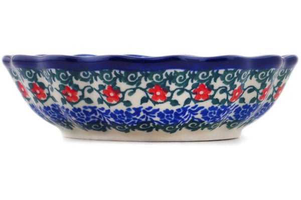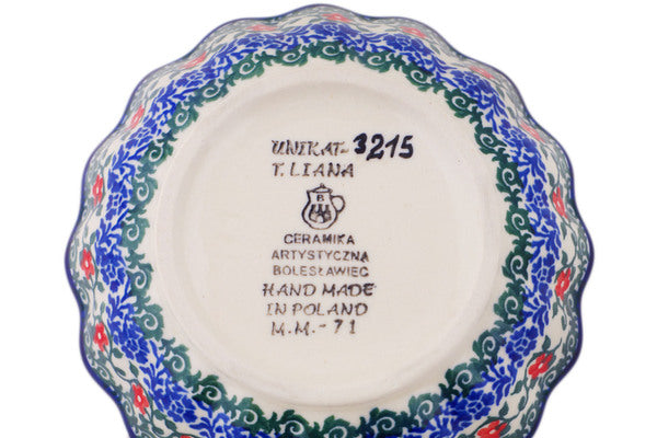 This Polish Pottery 5" Scalloped Fluted Bowl - Country Bouquet is handmade and handpainted by the Ceramika Artystyczna factory in Boleslawiec, Poland.