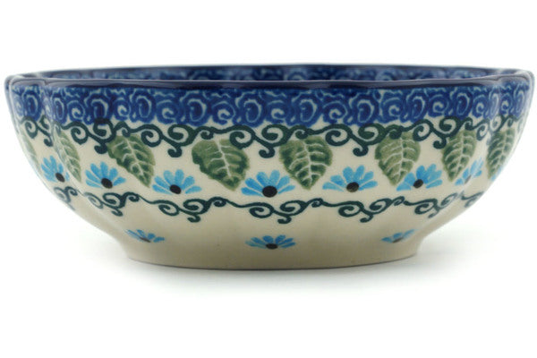This Polish Pottery 5" Scalloped Fluted Bowl - Forget Me Not is handmade and handpainted by the Ceramika Artystyczna factory in Boleslawiec, Poland.