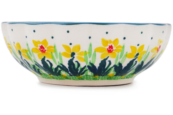 This Polish Pottery 5" Scalloped Fluted Bowl - Summer Meadow is handmade and handpainted by the Ceramika Artystyczna factory in Boleslawiec, Poland.